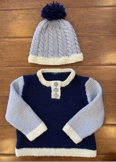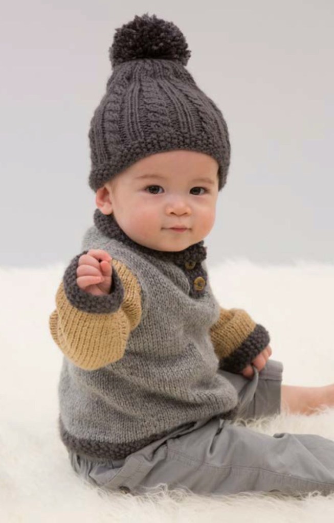 Link all’originale :https://www.yarnspirations.com/en-row/products/red-heart-handsome-sweater-and-hat?