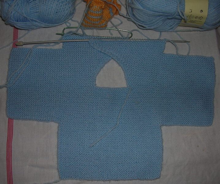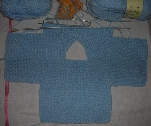 Dice: A 12 cm di altezza della manica chiudere 25 ( 28-30) m ai lati, lavorare ancora 8( 10-12) cm a legaccio poi chiudere.