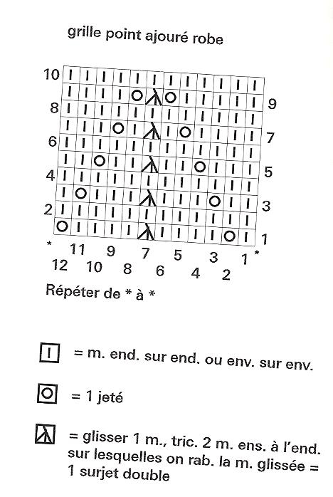 p traforato-lavorare i 10 ferri dello schema ripetendo le 12 maglie.