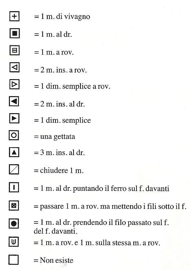 ferro 17)-5 dir, 1 gett, 2 m ass ritorte( prese da dietro),9 dir,2 ass al dir,1 gett,( 2 dir,1 gett, 2 ass rit,9 dir,2 ass al dir,1 gett) rip fino alle ultime 5m: 5 dir