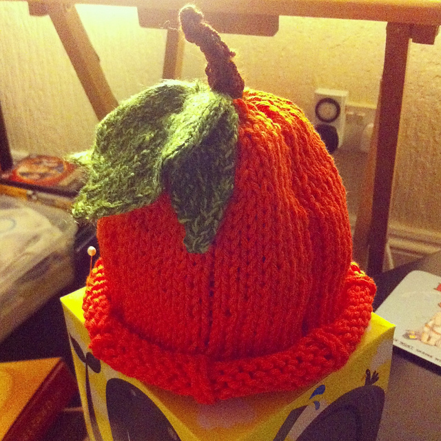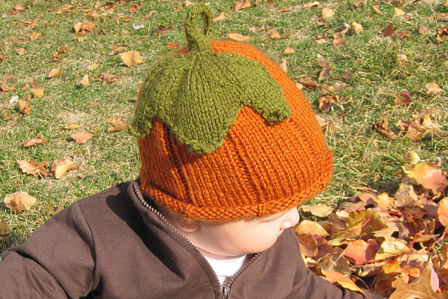 originale:Julie Dietz This leaf attaches to the top of the Pumpkin Hat knitting pattern for babies and kids. Materials: