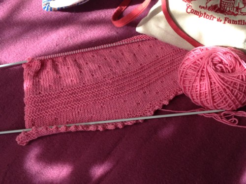 Con i ferri 2,5 e riprendere 29m(32-35)dalla parte davanti dello scalfo di destra,lav 2cm a legaccio,e lavorare 2m assieme dopo 6m dall’inizio del primo ferro,dopo 5m all’inizio del terzo ferro,dopo 4m all’inizio del 5° ferro,e dopo 3m all’inizio del 7° ferro.