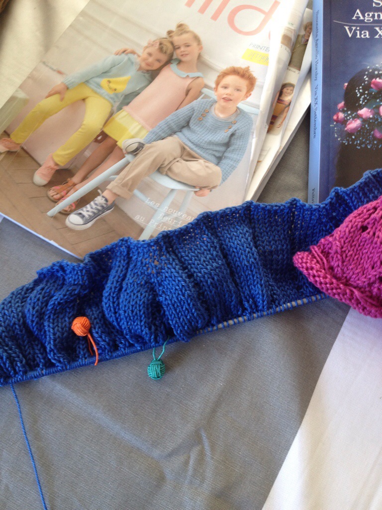 Di ritorno a Boston mi concedo una mezza giornata di riposo ,riprendo i lavori accantonati: i 2 topdown ;per Flavia con le foglie allo sprone e uno a coste-finte:. 6 dir/2rov ma al rov si lavora tutto rovescio, per uno dei maschi e poi ho il top nero per Camilla da finire.