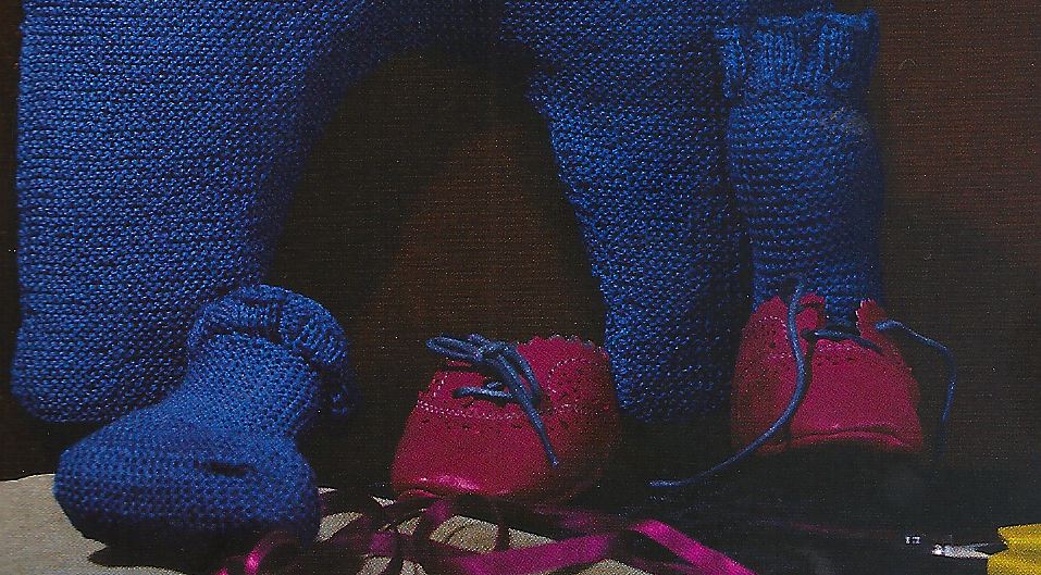 Questo è un completo cardigan-pantaloni-berretto e calzine