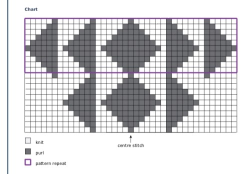 Ora lavorare in tondo a m rasata con lo schema al centro del davanti fino ad avere 8 (9) 10 (11) 12 rombi al centro contati dal bordo dello scollo .