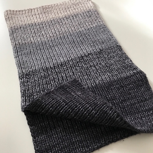En tenant l’ouvrage du côté endroit et en utilisant l’aiguille en main et une autre aiguille circulaire de la même taille tenue derrière la première, séparer les mailles à l’endroit des mailles à l’envers comme suit : glisser les mailles à l’endroit sur l’aiguille se trouvant à l’avant de l’ouvrage, et glisser les mailles à l’envers sur l’aiguille se trouvant à l’arrière de l’ouvrage. Répéter jusqu’à ce que toutes les mailles soient séparées. Maintenant, avec les mailles à l’endroit sur l’aiguille à l’avant de l’ouvrage et les mailles à l’envers sur l’aiguille à l’arrière de l’ouvrage, faire un grafting au point Kitchener.