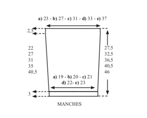 A a) 34 cm – b) 38 cm – c) 42 cm – d) 45 cm – e) 51 cm di altezza . tot., formare la spalla chiudendo dalla parte dello scalfo ogni 2 ferri : a) 4 x 3 m. et 1 x 4 m. – b) 1 x 3 m. et 4 x 4 m. – c) 4 x 4 m. et 1 x 5 m. – d) 2 x 4 m. et 3 x 5 m. – e) 2 x 5 m. et 3 x 6 m.