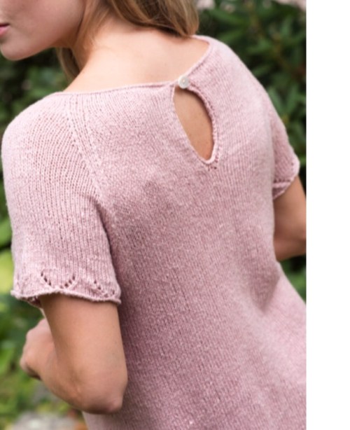 Si lavora in tondo. Anche le maniche sono lavorate in tondo e poi aggiunte al corpo allo scalfo. Lo sprone è lavorato in tondo fino a 10 cm sotto il girocollo. A questo punto il lavoro si divide e si lavora in avanti e indietro lasciando un’apertura di 10 cm al centro del dietro.