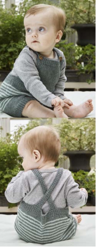 Si lavorano in avanti indietro i bordi a coste delle gambine poi si montano le maglie del cavallo del davanti quindi si uniscono le sezioni per lavorare in tondo. Si faranno dei ferri accorciati per dare più spazio sul dietro , poi il pagliaccetto si lav in tondo fino alla cintura dive il lav si divide.