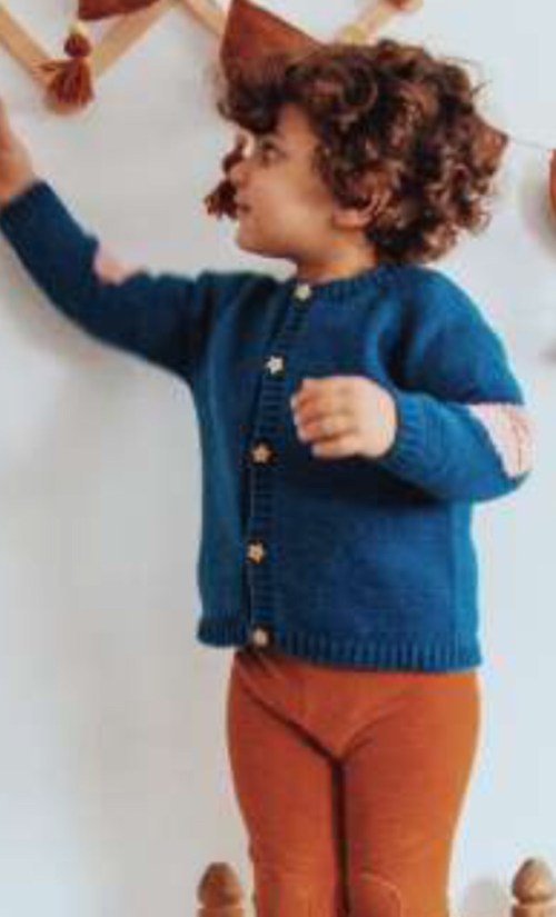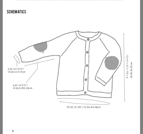 Le maniche si lavorano in avanti indietro a maglia rasata. Si faranno delle diminuzioni ai lati del ferro e allo stesso tempo la toppa viene piazzata al centro della manica e lavorata jacquard seguendo lo schema