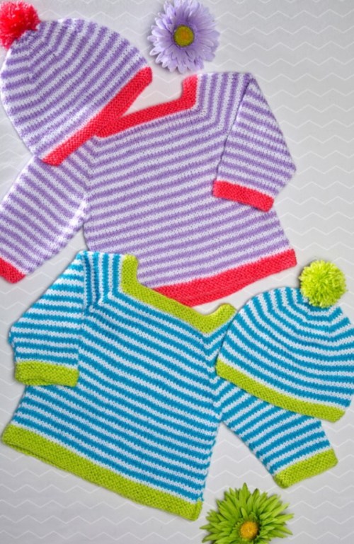 Nota: Con un gomitolo di ogni colore farete sia il golfino che il berretto.