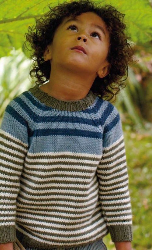 Gli ultimi otto ferri formano la sequenza delle righe per il resto della manica. Sempre continuando a lavorare a righe facendo le diminuzione dei raglan come impostato, diminuire una maglia ai lati del ferro successivo e poi ogni due ferri per sei volte (otto-11), resteranno 17 maglie.
