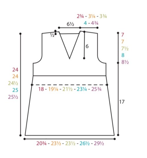 Lav le dim come dietro fino a 45.5 (45.5- 47-48-49.5) cm finendo con un f sul rov del lav
