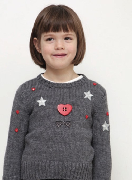 Un pull semplice che piacerà alle vostre bimbe per il bottoncino a forma di cuore e le stelline