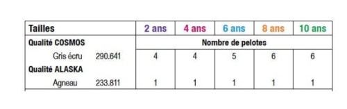 Cosmos, col Gris écru e qualità Alaska, col Agneau Bergère de France (vedere il n di gom secondo la taglia nella tabella sottostante )