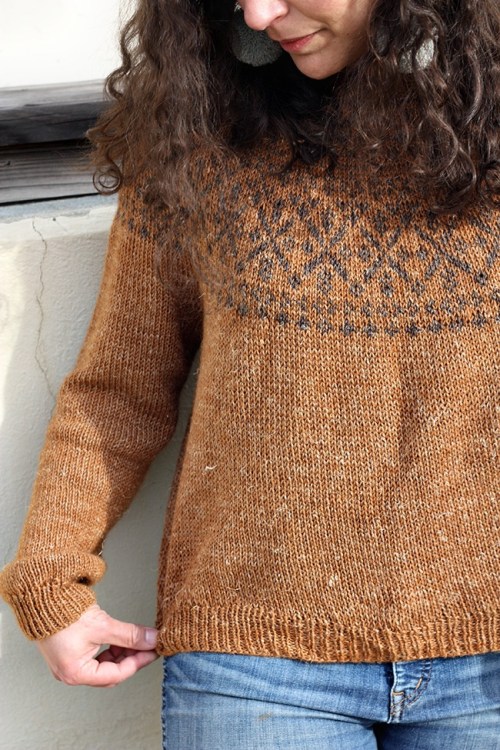 Questo pullover Fair Isle top-down utilizza un nuovo filato che mescola alpaca, lino e lyocell. Leggero e arioso