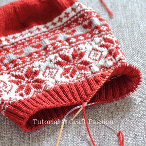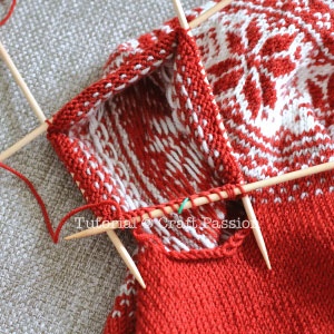 Con il rosso e i ferri da 4 mm montare 48 maglie mettere un segno per l’inizio del giro