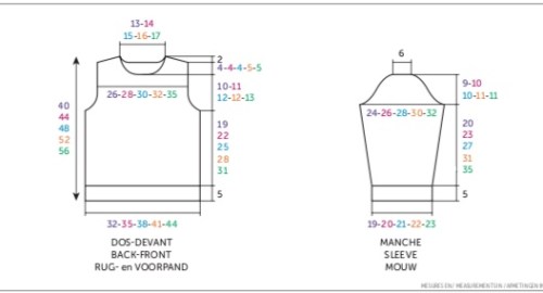 A 25-28-32-36-40 cm (68-76-86-98- 108 ferri ) totali, chiudere ai lati ogni 2 ferri: 4 anni :1x3m.,1x2m.,7x1m.,2x2m., 1 x 3 m. e le 14 m. restanti