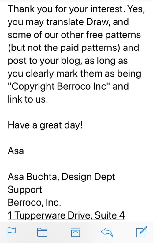 Permesso per tradurre e pubblicare questo e tutti i modelli di Berroco purchè non a pagamento e con il link: