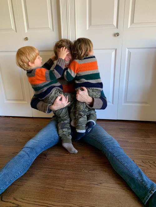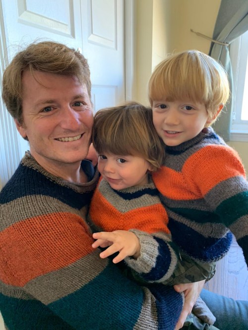 Al papà avevano regalato questo bel pull colorato ..e poi il resto si commenta da solo..