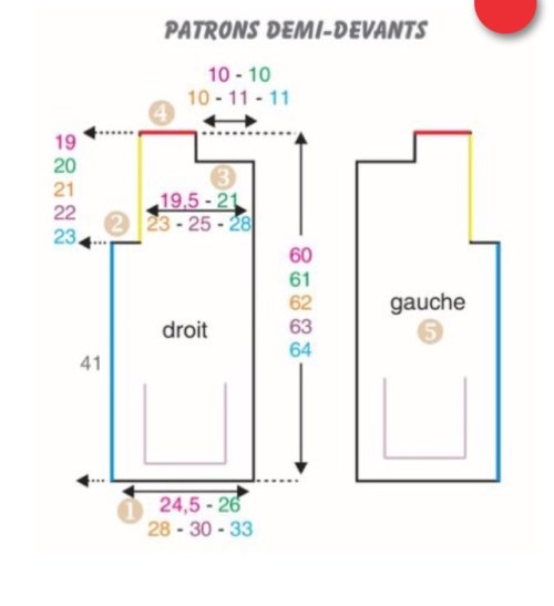Fare le cuciture delle spalle seguendo i tratti in rosso (vedere gli schemi).