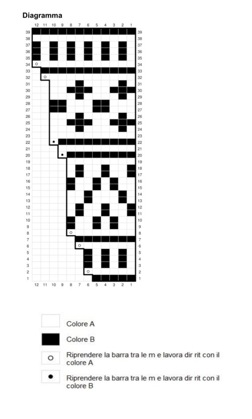 ● Iniziare a lavorare il motivo con il colore A e il colore B (vedi diagramma).