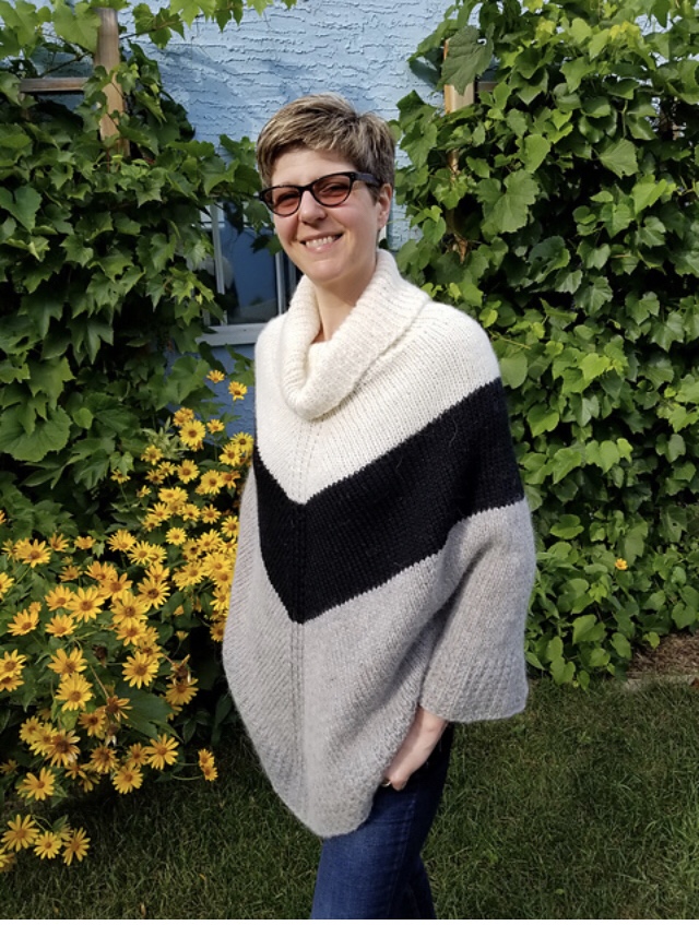 ‘Minjia Poncho’ si può adattare a filati di spessore diverso e svariate taglie