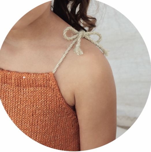 Dopo l’ultima diminuzione lav 5 ferri sulle 31-33-36-38 m. restanti e chiudere tutte le m.