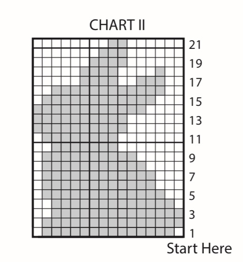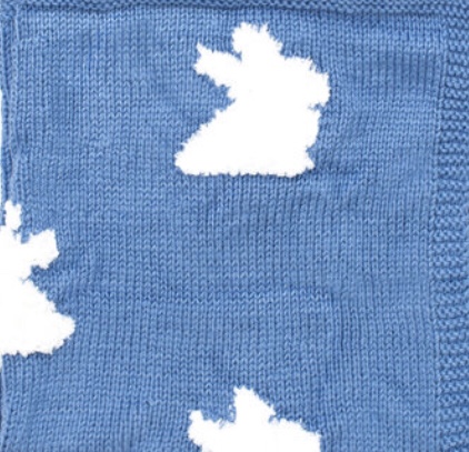 Nota: quando si lavora dal grafico, fare piccoli gomitoli del colore da utilizzare per ciascun coniglietto uno per ogni area separata del design. Inizia nuovi colori nei punti appropriati. Per cambiare colore, incrocia i due fili dove si incontrano, sul rov del lav per evitare un buco