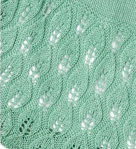 Lav a legaccio ( in tondo:1 g dir,1 g rov) per 4 giri e dal g succ iniziare a lav il motivo traforato che si ripete per 11(12-13-14) volte lungo il giro.