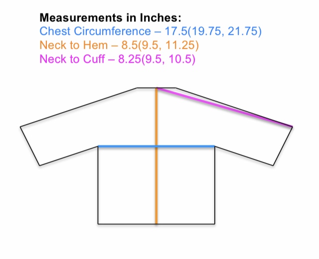 Per una femmina : Lav al dir le prime 22(25, 28)m, mettere in attesa le succ 32(36, 40) m , della prima manica, lav al dir le succ 40(44, 48) m del dietro mettere in attesa le succ 32(36, 40) m della seconda manica e lav al dir le succ 19(22,25)m , 1 gett,2 ass,1 dir