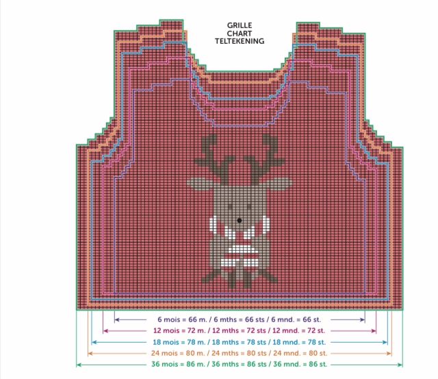 Continuare a jacquard con i ferri . n° 3 seguendo lo schema secondo la taglia che si vuole realizzare .