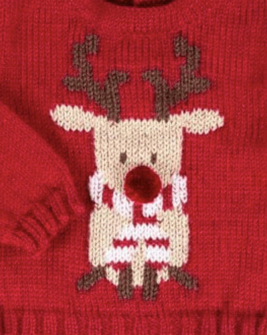 Montare 42-46-46-50-50 m. col rosso con i ferri . n° 2,5. Lav 2 cm (6 ferri ) a coste 2/2, e nell’ultimo f per la taglia 24 mesi dim 1 m. ai lati(= 42-46-46-48-50 m.). Cont a m rasata con i ferri . n° 3 aumentando ai lati a 2 m dal bordo :