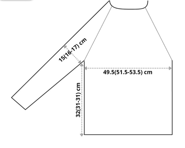 Nota: le 13 m riprese dal sottomanica e dal dietro si lavoreranno al dir , il resto della manica a coste 1/3 ( p n 2)