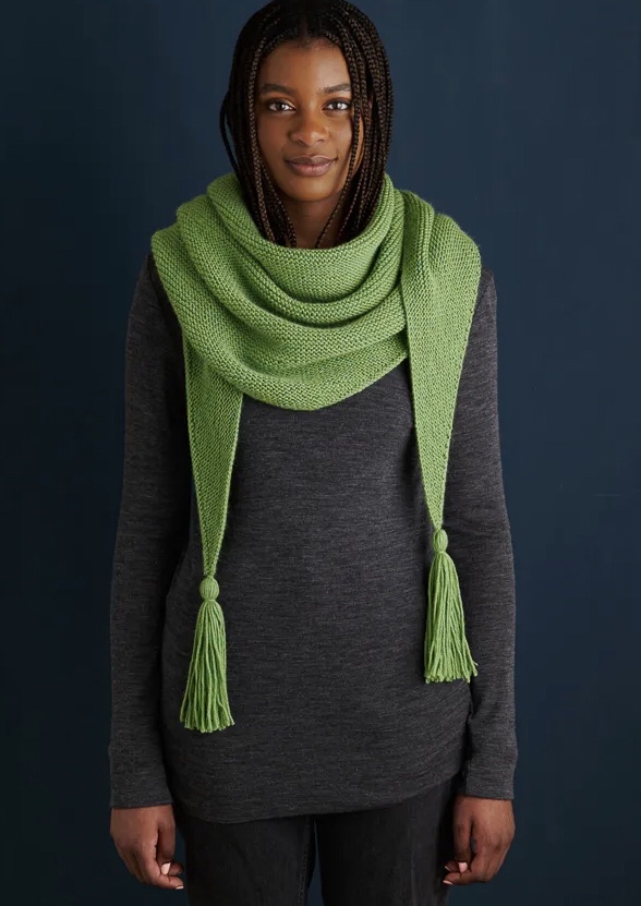 - “Il nostro “Slice Of Goodness Wrap “ ha così tanto di ciò che amiamo del lavoro a maglia: il ritmo e la sensazione del punto legaccio nelle tue mani, la meraviglia di creare una bella forma e la gioia di indossare qualcosa fatto da te !”