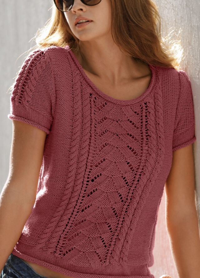 Lav un f sulle 59-63-69-75-81 m. ottenute, poi cont. lavorando . 23-25-28-31-34 m. a m rasata rov ., 6 m. a trecce A , distribuendo . 2 aum . al primo ferro,1 m a m rasata rov., 3 m. a p traforato , 1 m. a m rasata rov ., 6 m. trecce B , distribuendo . 2 aum al primo ferro , 23-25-28- 31-34 m. a m rasata rov. (= 63-67-73-79-85 m.).