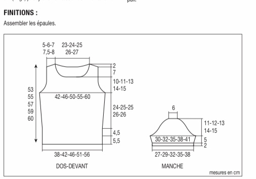 A 10-11-13-14-15 cm dall’inizio dello scalfo (122- 128-132-138-140 ferri di altezza .tot.), chiudere le 20-22-24- 26-28 m. centrali e cont. a lav ogni lato separatamente chiudendo ai lati dello scollo 1 x 4 m., 1 x 3 m., 2 x 2 m., 4 x 1 m.