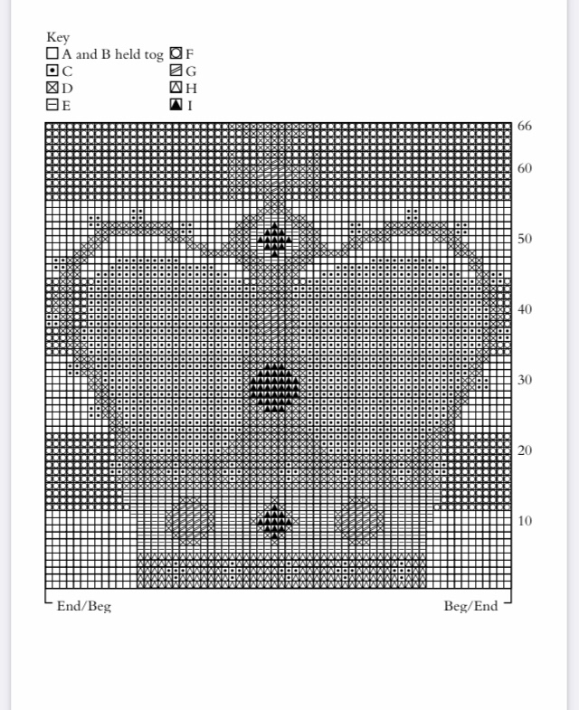 , diminuire 1 m al centro dell’ultimo ferro finendo dopo 10 ferri con i col A B assieme e finendo con un f sul rov del lav . 83 m