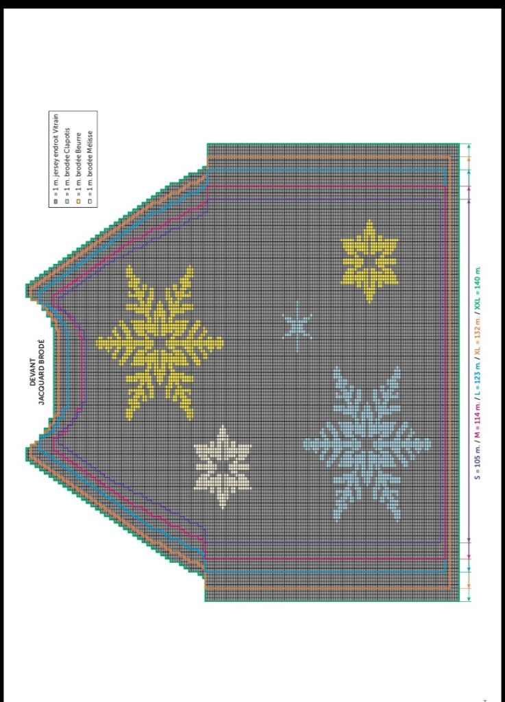 E 1 gom di ognuno degli altri 3 colori : burro bianco e celeste ; le stelle di neve sono ricamate sopra a p maglia seguendo lo schema a seconda della taglia.