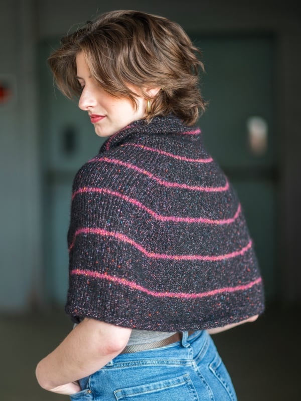 Lav 4 giri al rov poi proseguire a m rasata ( sempre al dir) alternando i 2 giri fuxia ogni 18 grigi ; a 23 cm cambiare con i Ferri più grandi da 40 cm