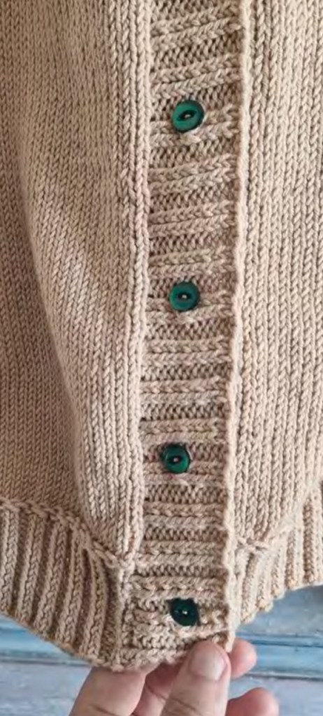Si lav come il bordo dei bottoni ma con le asole. Iniziare e lav come per il bordo sinistro per 1,5 cm;
