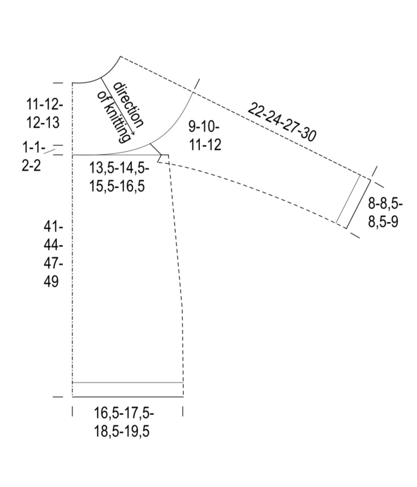 Lunghezza maniche dall’ascella al polso: 22(24)27(30) cm