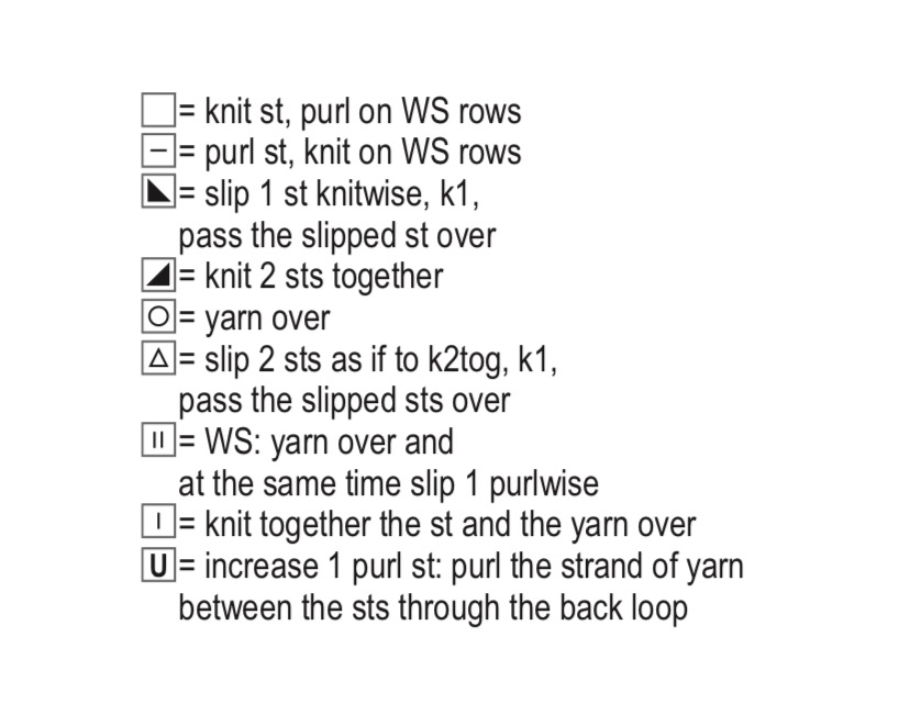Stitch patterns Lace and texture pattern: follow the chart and instructions. Garter