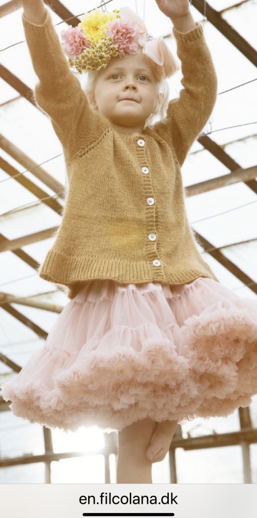 “Onde dorate di campi di grano (kornmark in danese) sono l’essenza dell’estate danese. Kornmark è un semplice cardigan per bambine ispirato ai campi e alle spighe di grano. La piccola balza all’orlo completa il cardigan, rendendolo sia molto semplice che delicato e femminile, proprio come piace alle bambine.”