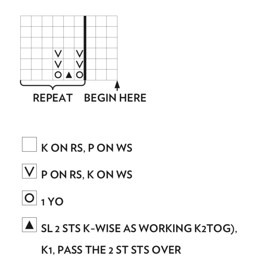 1 m. di bordo, 1 gettato, 2 m. insieme a diritto, 1 gettato, ripeti da – fino alla fine, termina con 2 m. insieme a diritto.