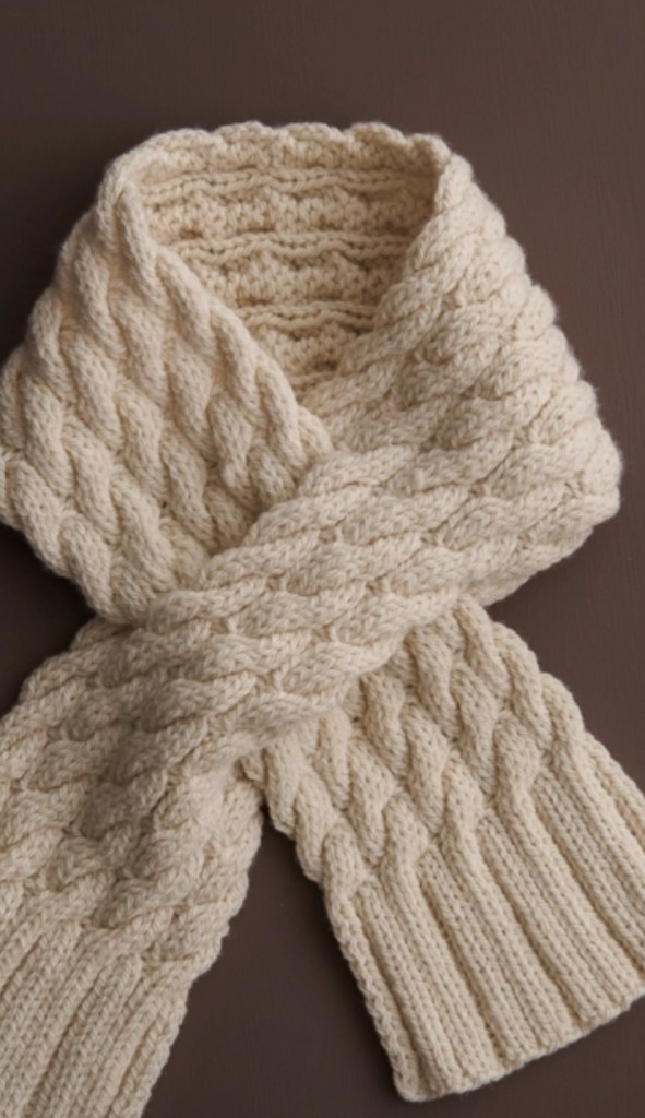 Sollevare il filo che unisce in basso i due ferri prendendolo al rov e lavorarlo al dritto ritorto