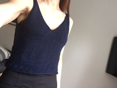 4 : A 22 cm ,tagliare il filo lasciandolo abbastanza lungo per la cucitura,passarlo con un ago nelle m e tirare forte, fissare e cucire i due lati.
