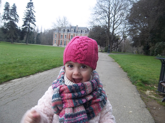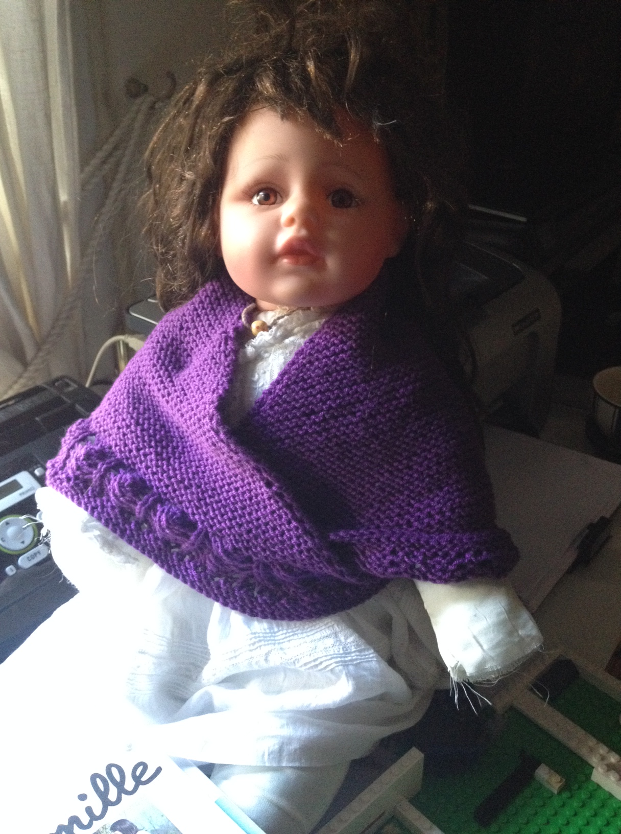 può diventare uno scialle per una neonata(6-12 mesi), in questo caso cucite 2 laccetti ai fianchi e all’angolo del lo scialle.
