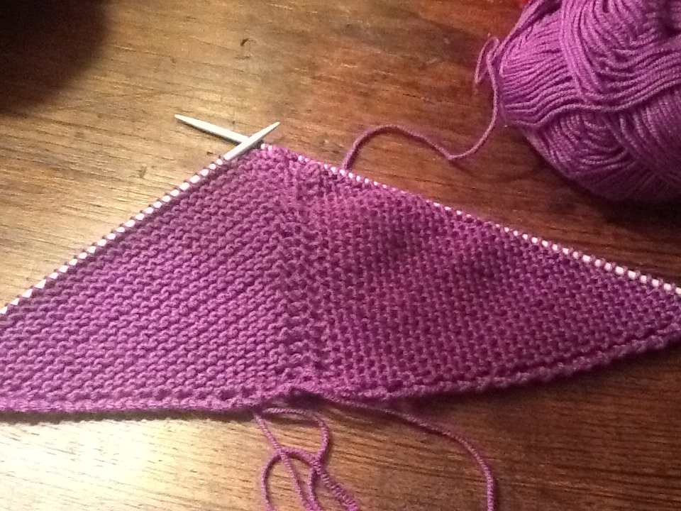 Più facile di quello che può sembrare, si lavora a legaccio con 4 aumenti a gettato ogni 2 ferri:un aumento ai lati e un aum ai lati della m centrale, poi si lavora il bordo.