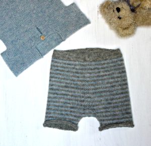 Decrease row (Wrong Side): Knit, decreasing 4 (1, 0, 5) sts evenly spaced across row – 21 (24, 25, 26) sts.